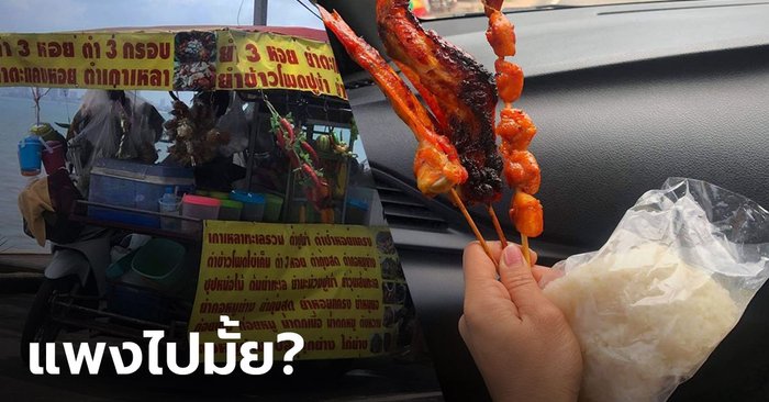 สมาชิกเฟซบุ๊ก Southen Man เปิดเผยเรื่องราว ผ่านกลุ่ม "สัตหีบ...เจ้าเอย" โดยระบุว่า "ผิดเองที่ไม่ถามราคาก่อน ทั้งหมดนี้ 90 บาท เฉพาะข้าวเหนียว 20 แพงไปมั้ยครับ #ชายหาดบางเสร่"